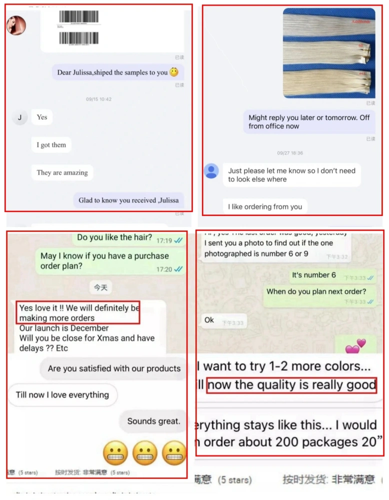 De klanten van Lum Hair zijn verspreid over Groot-Brittannië, de VS, Canada, Australië, Denemarken, Nieuw-Zeeland, Noorwegen, Duitsland, Frankrijk, Nederland, Zweden, Polen, Tsjechië, Slowakije, enz. Ivy spreekt als verkoopmanager vloeiend Engels voor een goede communicatie.