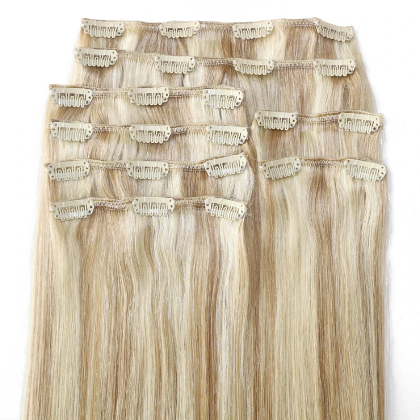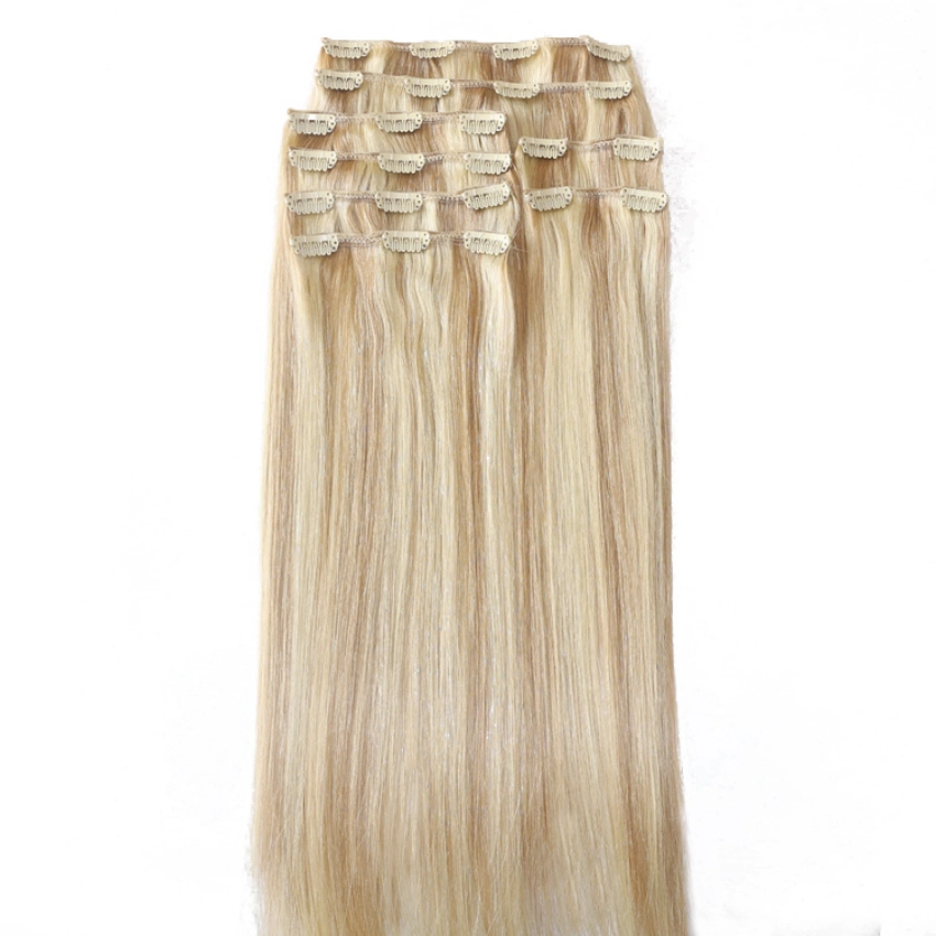 Deze Clip-in Extensions van Remy Human Hair zijn eenvoudig te installeren en van nature naadloos, waardoor klanten binnen enkele minuten onmiddellijke lengte, volheid en een mooi, authentiek kapsel krijgen. Het heeft een flexibel gewicht dat past bij de veelzijdige behoeften van de klant op het gebied van gewicht. Meest voorkomende is 16 inch, 120 g; 18 inch, 140 g; 20 inch, 160 g; 22 inch, 180 g; 24 inch, 220 g. Lum Hair heeft ook een assortiment van meer dan 30 kleuren, van natuurlijke kleuren, donkere kleuren, gemengde kleuren, highlights tot populaire balayage. Klanten kunnen altijd van ons krijgen wat ze nodig hebben.